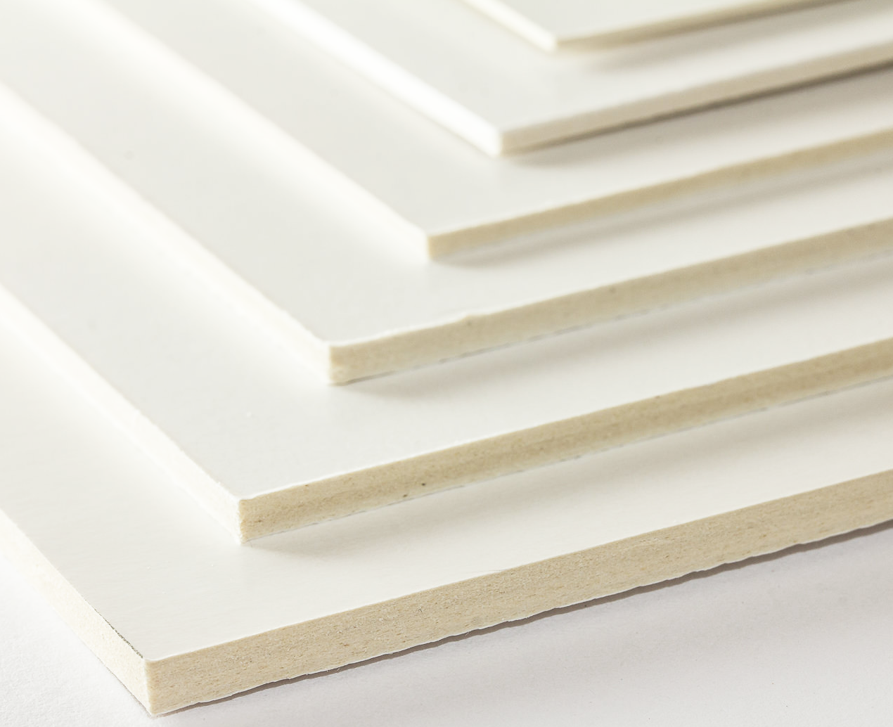 Das verwendete Material ist starker Indoor-Displaykarton. Dieser ist weiß und hat eine Stärke von 1 mm. Bei der Größe der Kartons sind Höhe sowie Breite variabel, sodass Sie die Größe frei wählen können, es wird auf Format geschnitten. Das Mindestformat ist 10 cm x 10 cm. Auch die Stückzahl kann frei gewählt werden. Sowohl die einseitig 4/0-farbige als auch die beidseitig 4/4-farbige Bedruckung sind möglich.